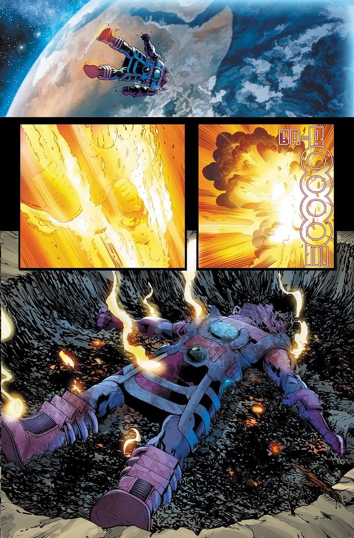 Uma mão Celestial ameaçou complicar os planos de Nathaniel Richards. E quais são os planos dele? Em um flashback com a Valéria, é explicado que tudo o que o vovô Richards fez desde que veio pro presente foi premeditado. Tudo focado para culminar nessa situação com os Celestiais e o portal do Conselho. E o mais importante, era preciso segurar os Celestiais por 27 minutos naquela situação. Mas claro, apenas a Valéria e seu avô sabiam disso. Para assegurar que tudo ocorresse dentro do planejado, o Reed alternativo acabou morrendo e Dr. Doom chamou a responsabilidade para si, mesmo após a caçula do Quarteto Fantástico ter lhe revelado seus verdadeiros planos. Em um gesto de altruísmo (será? Victor sempre tem um plano de onde ele tira proveito da situação) ele ataca os deuses e os atrasa o suficiente para que eles atravessem o portal apenas 28 minutos depois do início da algazarra. Missão cumprida, os seguraram por mais de 27. Victor, em decorrência de seu ato, morreu ou ficou preso na dimensão do Conselho, enquanto que os Celestiais partiram para longe.
