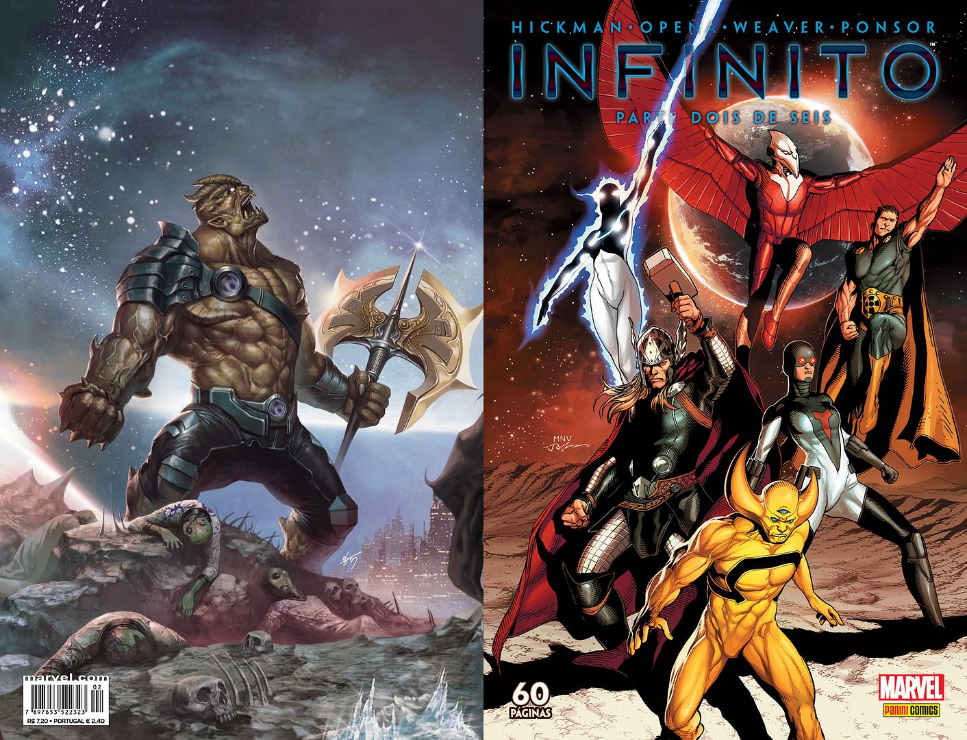 (Iron Man 14, Thor: God of Thunder 12, Young Avengers 8)Revista mensal, formato americano, 68 páginas, papel Pisa-brite, R$ 6,50, distribuição nacional.