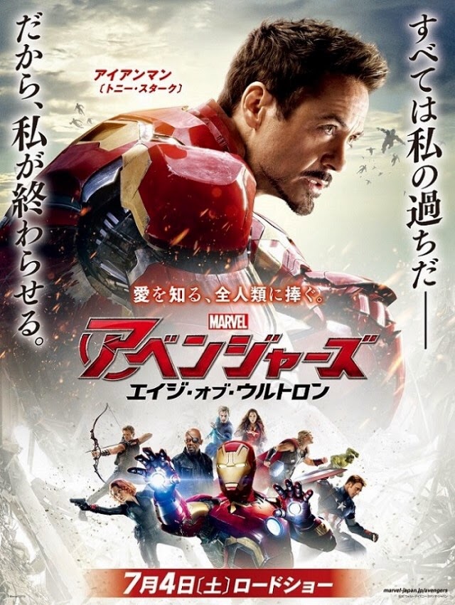 Ontem foi a vez de Vingadores: Era de Ultron estrear na China e se tornar uma das maiores bilheterias da região (maior de todos os filmes da Marvel). Mas quem mora no Japão só vai conferir o filme lá pra Junho. Só que o mais curioso nisso tudo é que os japoneses tem um jeitinho todo especial de divulgar a coisa. Tempos atrás, divulgamos na página do Facebook o trailer japones que praticamente entregava todo o filme. Hoje, temos os posters pra lá de inusitados com algumas cenas em destaque: