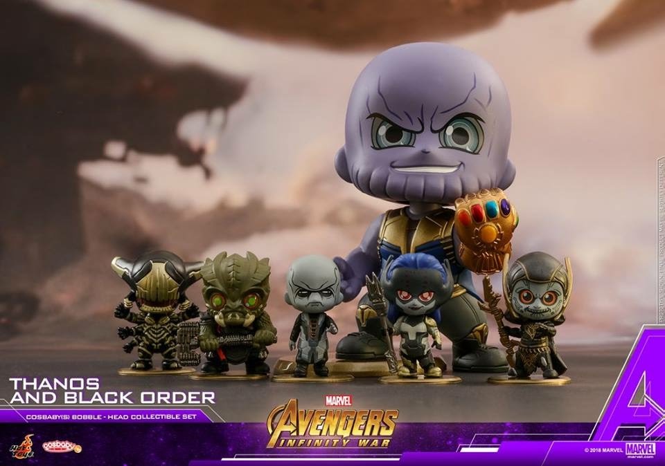 Na versão cosbabies, até os vilões são bonitinhos. Nessa nova leva de fotos, temos a Ordem Negra, o grupo de vilões capangas de Thanos, com destaque para o Titã com a Manopla do Infinito completa e o seu principal general, Corvus Glaive: