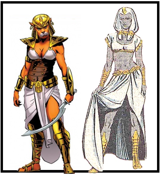 Na série, Hathor é a deusa da música e do amor, como a mitologia, mas ela é conhecida nos quadrinhos por se transformar no deus Leão Sekhmet. Este deus foi mencionado brevemente antes no UCM por T'Challa de Chadwick Boseman em Capitão América: Guerra Civil, ao lado da deusa pantera, Bast. Mas não se sabe se Hathor será uma deusa separada de Sekhmet no UCM ou se seguirá o caminho dos quadrinhos. Por fim, Tefnut é uma divindade inteiramente menor nos quadrinhos, é a deusa da chuva, mas ela deu à luz dois filhos, Geb e Nut, que mais tarde ajudariam Thor, Odin e o Cavaleiro Negro a derrotar Seth.